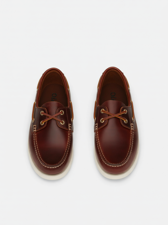 The Brown Waxed Boat Shoes by OSIRIS combine classic nautical style with durable craftsmanship. Made from high-quality waxed leather, they provide excellent resistance to moisture while maintaining a rich, natural finish that improves with wear.
